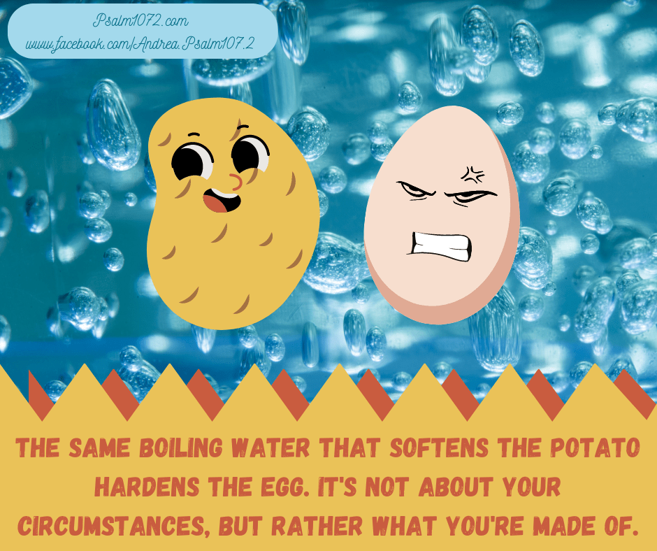 Sweet friends, the next time the water boils don’t let yourself be hardened. Remember Who is inside you. Let God use the rolling boil to shape you into who He would have you to be: a person of strength and compassion, an ambassador of hope and restoration, a Christ-like representative of God’s love.