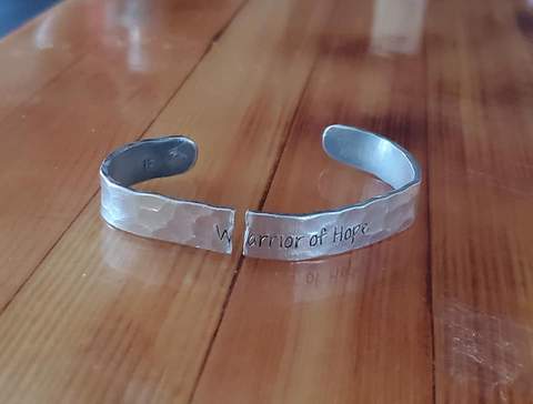 I wore the cuff pictured above every day from August of 2019 to June of 2022. Over the summer of 2022, I noticed that it had developed a weak point from the need to squeeze it tighter as I lost weight. Then, one morning in June, as I gingerly attempted to fit it on, it snapped. I was heartbroken. Romans 15:13 is such an integral part of my life’s mission – to share the hope of Jesus Christ with other people – and even though it’s just a hunk of metal, I couldn’t believe that God would allow a physical reminder of who I am and what I’m all about to break.